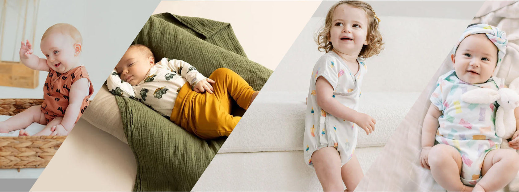 Dress your little one in comfort with our adorable collection of baby onesies, rompers, and sleepers. We offer a variety of styles, from breathable bamboo cotton short-sleeve bodysuits to cozy long-sleeve kimonos. Our selection features soft, high-quality fabrics designed for sensitive skin, making them perfect for playtime or peaceful sleep.