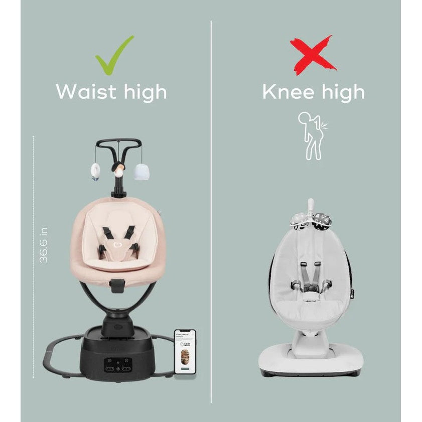 - Smart Connectivity: Features advanced control options to adjust swinging speed and sounds remotely, offering convenience for busy parents.