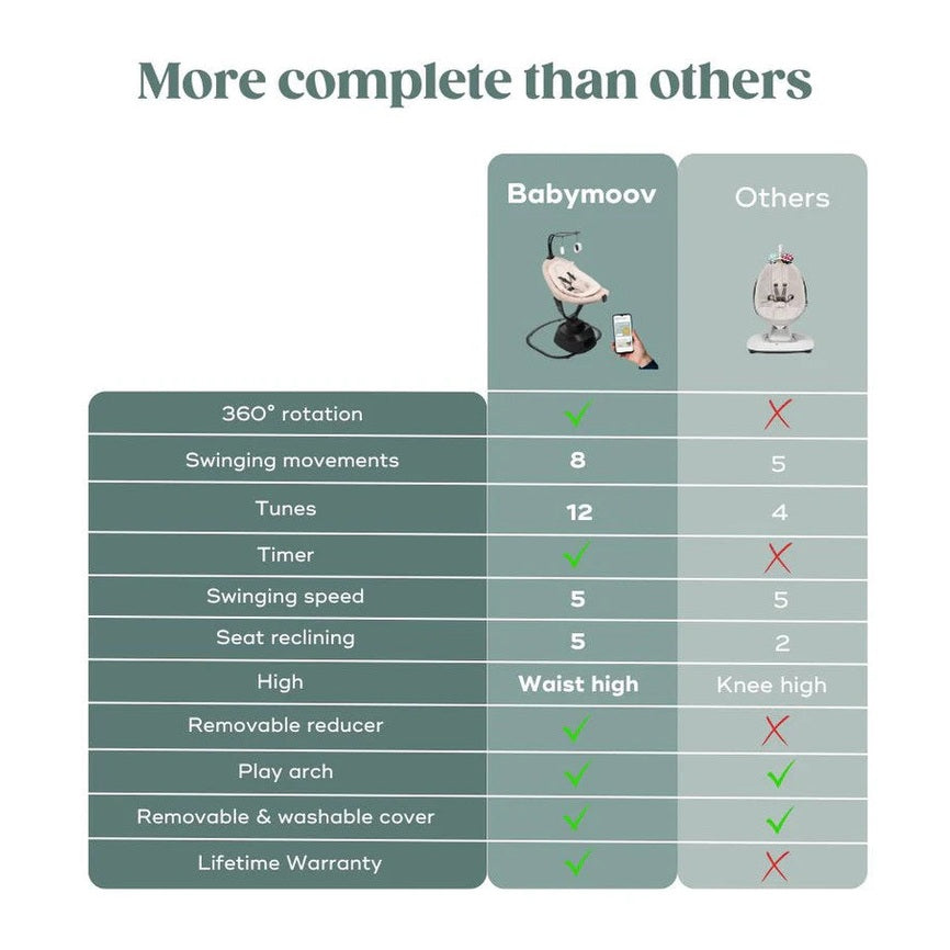 Many parents appreciate how the BABYMOOV swing allows them to soothe their baby comfortably while keeping hands free for other tasks. It creates quiet moments of connection and relief during the busiest days, supporting both parent and child wellbeing.