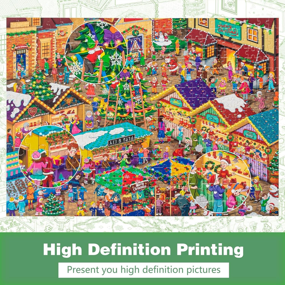 - Festive Design Innovation: Features a lively Christmas fair scene full of colorful details to spark imagination and storytelling.
