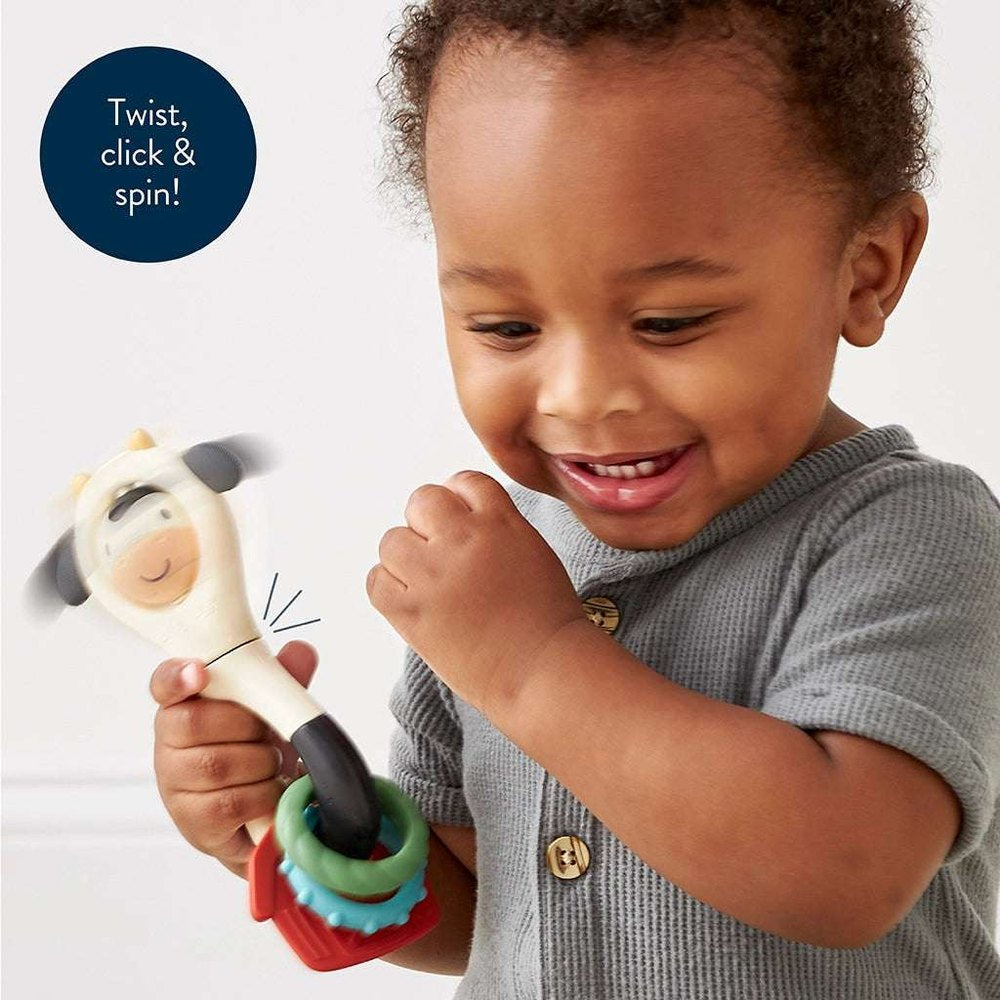 - Developmental benefits: Engages fine motor skills and sensory exploration with spinning elements and rattling sounds.