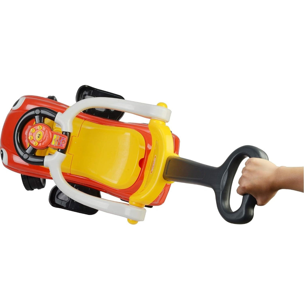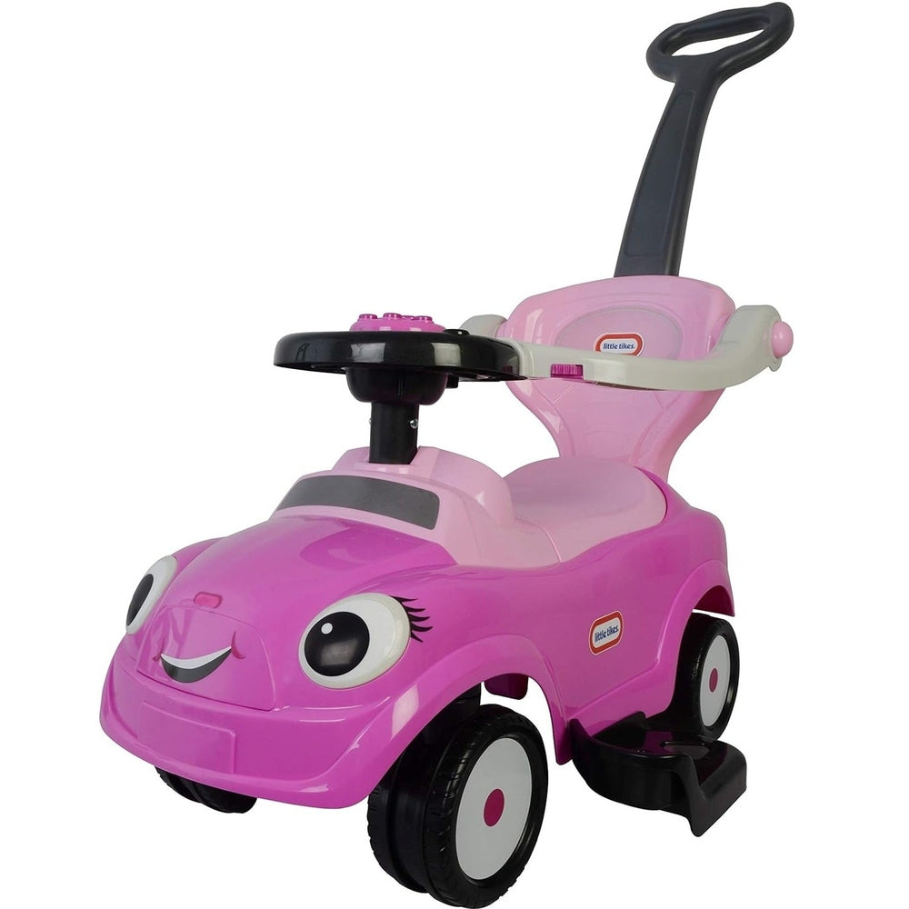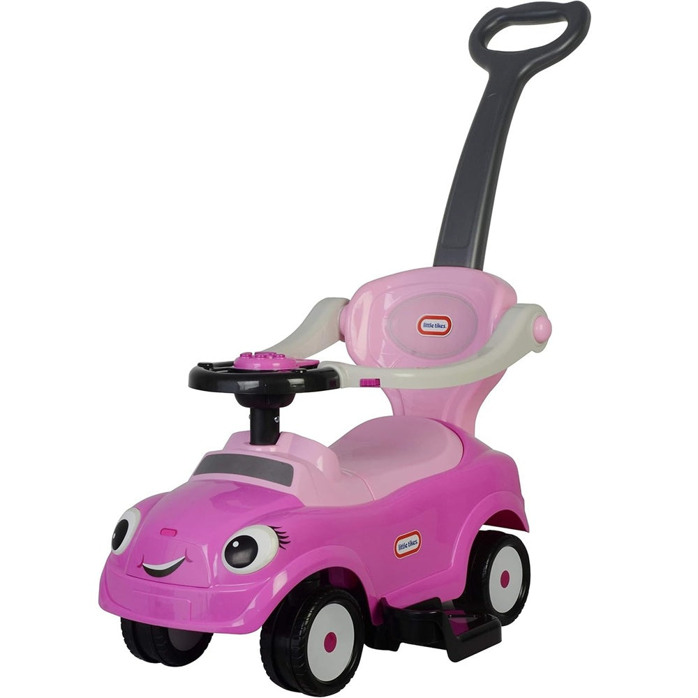 Help your kid become the coolest kid on the block with this Best Ride On Cars 3-in-1 Little Tikes Push Car. Officially licensed, this 3-in-1 push car features cute decals with a smiling face to entertain your kids for days. The 3-in-1 design lets kids use this ride-on car as a stylish stroller, walking car, and riding car. Changing riding styles is easy. The stroller handle, footrest, and handlebars are all removable for an easy switch to a ride-on push car. Your child can mimic your driving with a car of their own. The toy ride-on car has realistic features including a working steering wheel, music, and realistic horn sounds. This kids push car is recommended for kids ages 1 to 3 who weigh under 40 pounds. When your little kiddo's gotta burn rubber, you can start them off with the Best Ride On Cars 3-in-1 Little Tikes Push Car.
