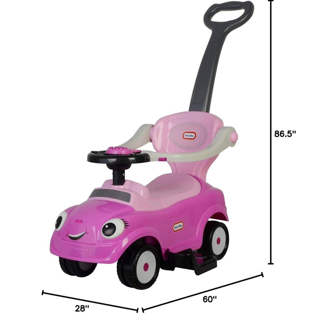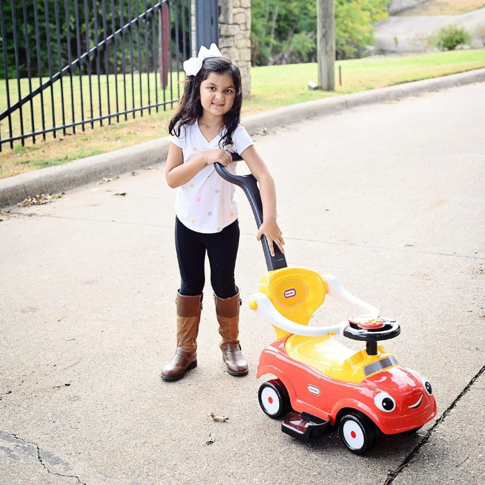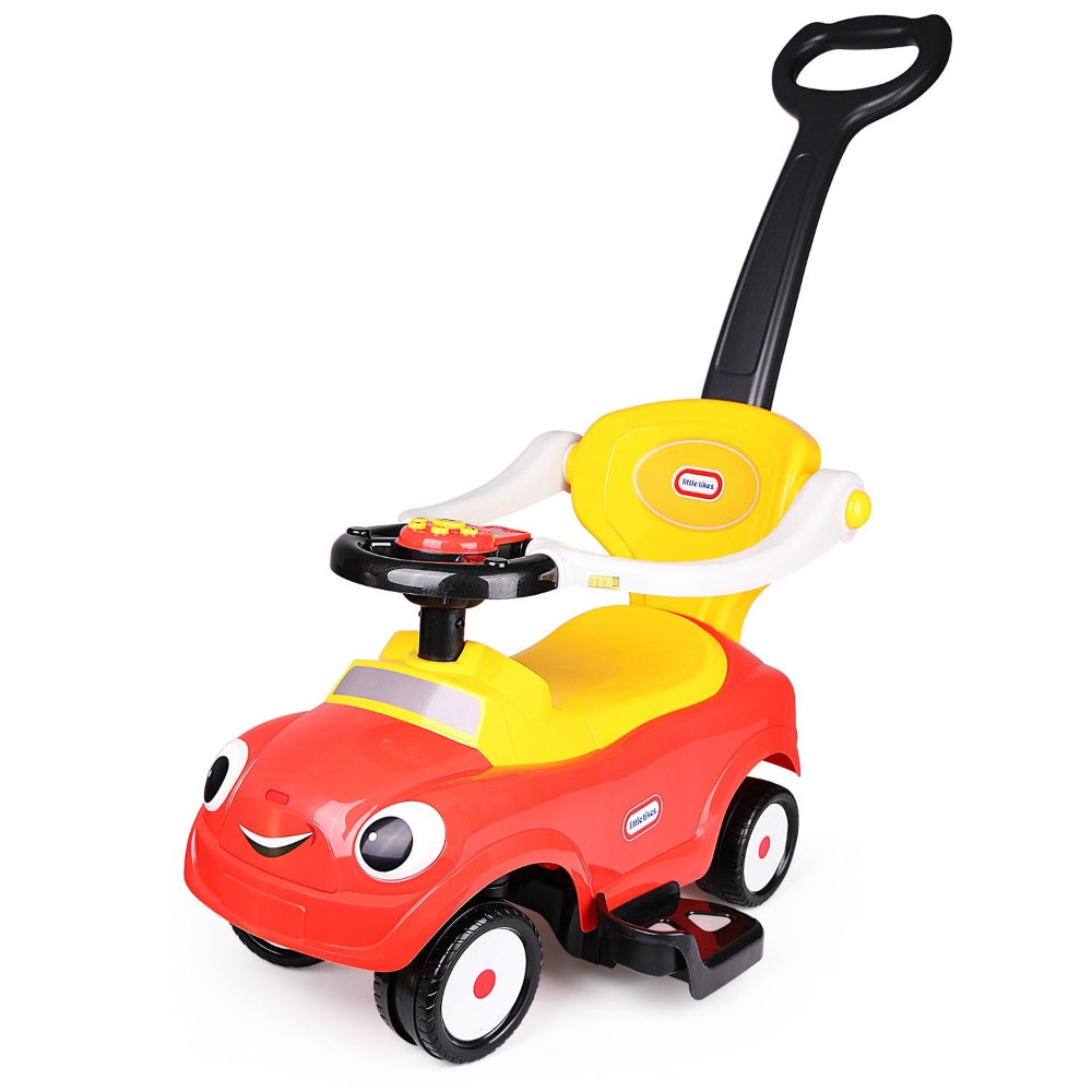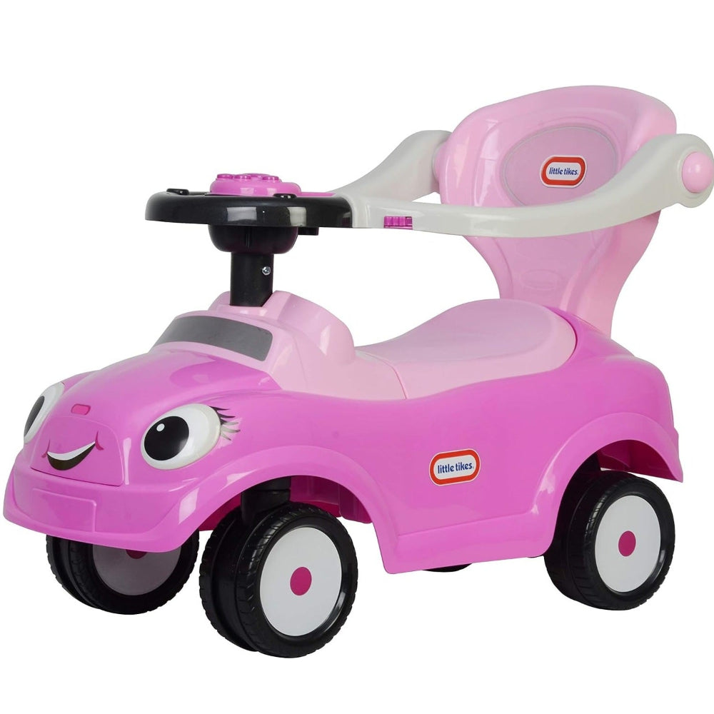 Help your kid become the coolest kid on the block with this Best Ride On Cars 3-in-1 Little Tikes Push Car. Officially licensed, this 3-in-1 push car features cute decals with a smiling face to entertain your kids for days. The 3-in-1 design lets kids use this ride-on car as a stylish stroller, walking car, and riding car. Changing riding styles is easy. The stroller handle, footrest, and handlebars are all removable for an easy switch to a ride-on push car. Your child can mimic your driving with a car of their own. The toy ride-on car has realistic features including a working steering wheel, music, and realistic horn sounds. This kids push car is recommended for kids ages 1 to 3 who weigh under 40 pounds. When your little kiddo's gotta burn rubber, you can start them off with the Best Ride On Cars 3-in-1 Little Tikes Push Car.