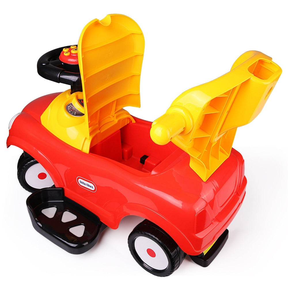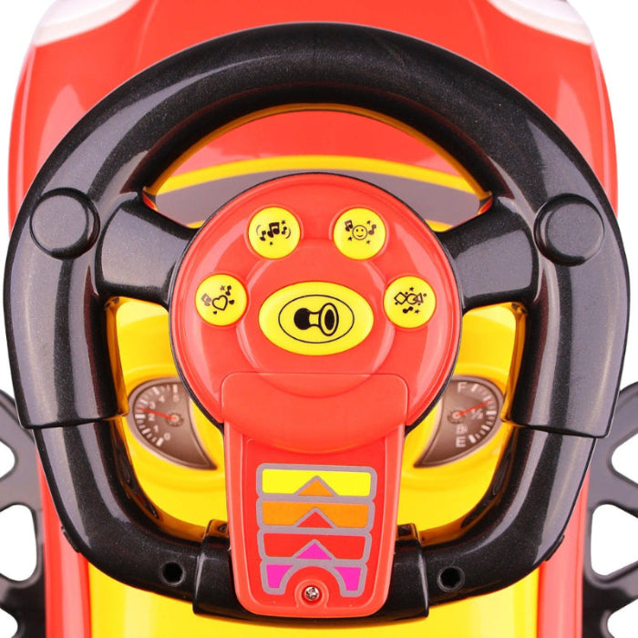 - Engages kids with colorful design, cute decals, working steering wheel, music, and realistic horn sounds