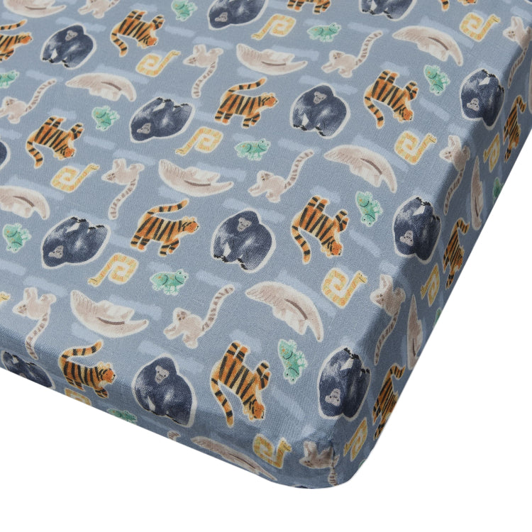 Loulou Lollipop Muslin Fitted Crib Sheet Jungle Friends