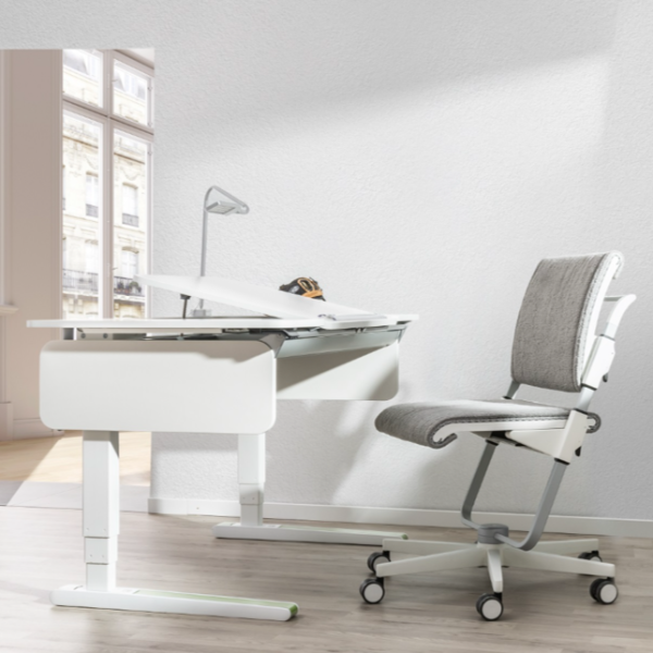 Children grow quickly and their needs change just as rapidly. All the better that the Champion adapts flexibly to the proportions of the body. With a stepless, motorized height adjustment from 63 cm to 128 cm, the table can be easily adjusted for sitting and standing positions - ideal for every stage of development.