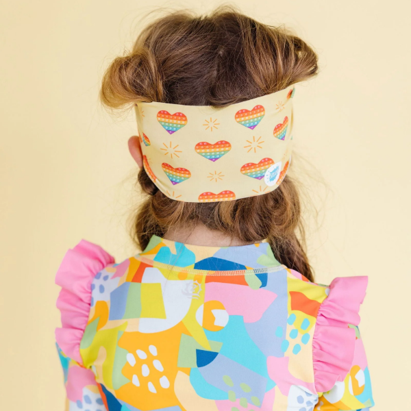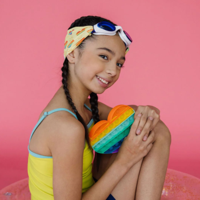 - Unique Design: The cheerful rainbow pop heart print on the headband adds a playful, inspiring touch to classic swim goggles.