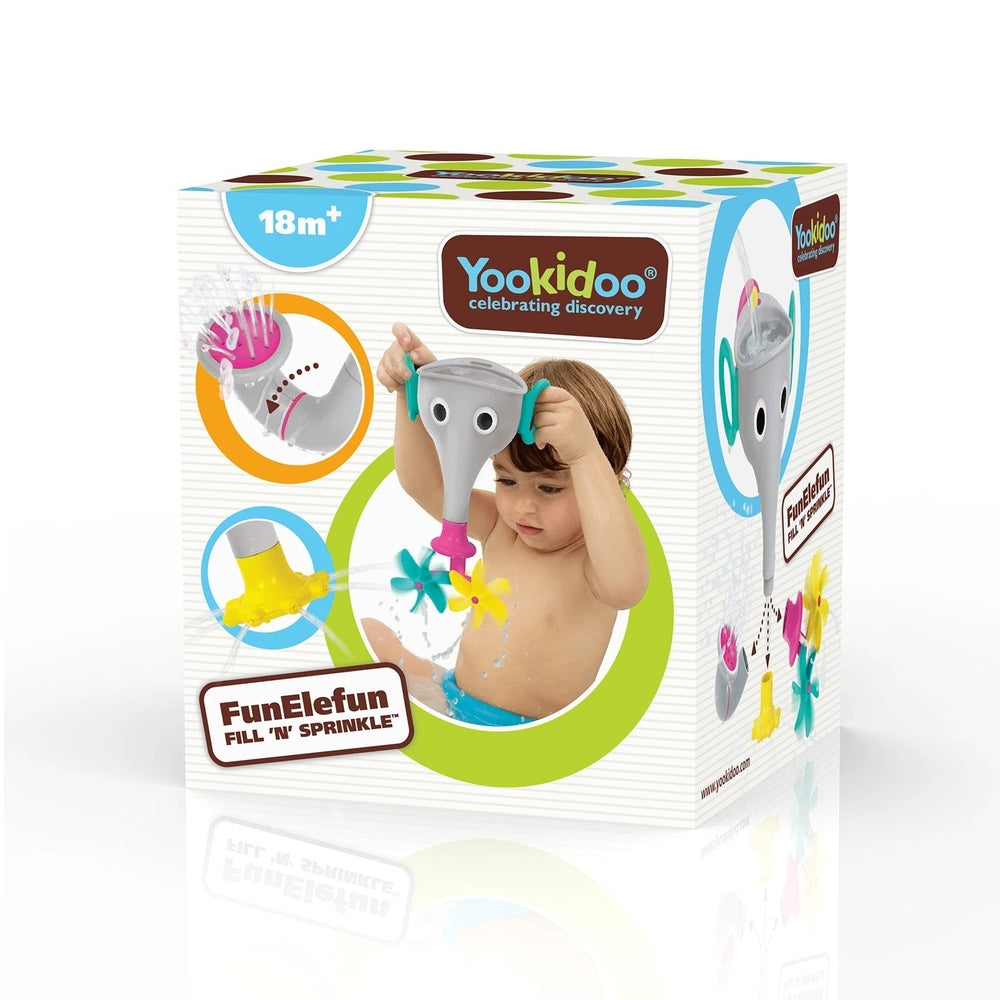 Transform your child's bath time into a joyful and imaginative experience with the YOOKIDOO FUNELEFUN FILL 'N' SPRINKLE GREY, a perfect solution to keep toddlers happily engaged in water play with interactive bath toys.