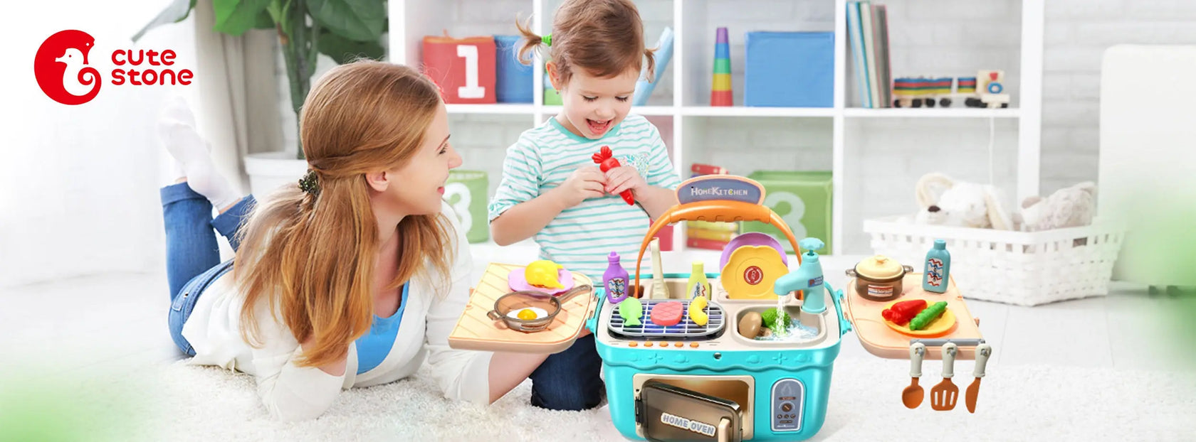 CUTE STONE offers interactive role-play toys for toddlers—kitchen sets, cleaning kits, and water tables.