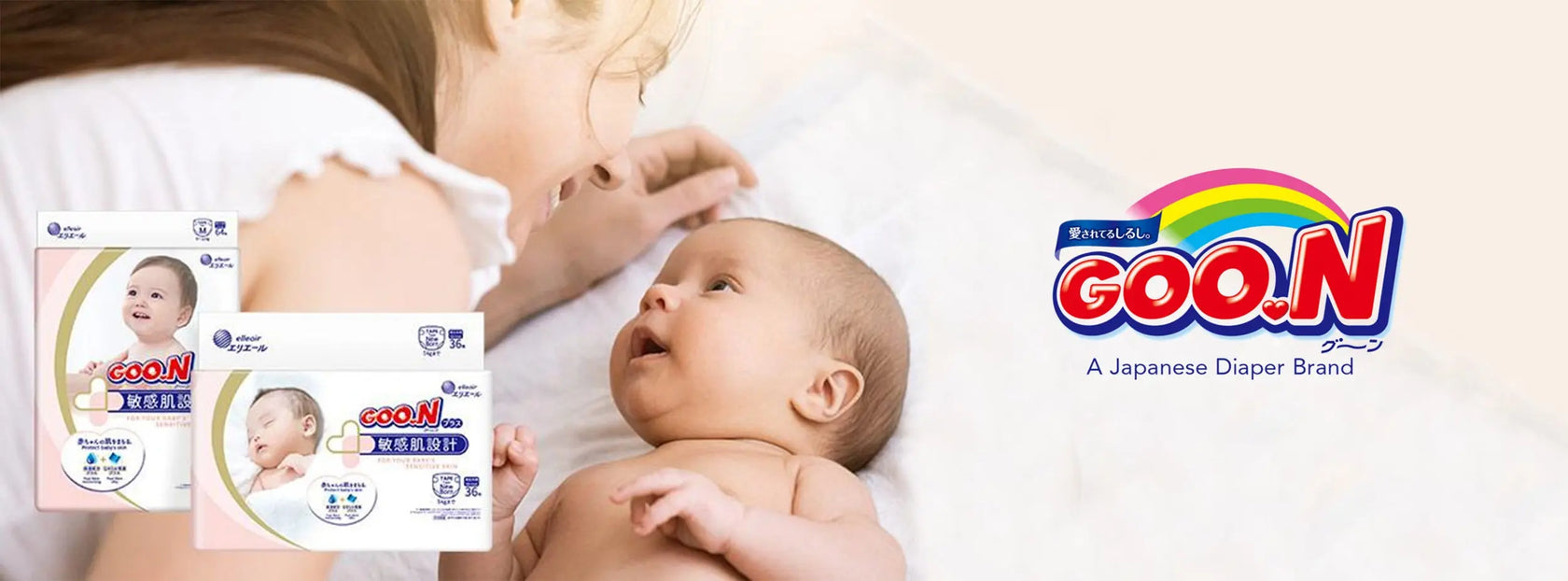 Keep your baby dry and comfortable with our collection of Goo.n diapers. As a leading Japanese brand, Goo.n offers ultra-absorbent, breathable, and soft diapers designed for sensitive skin. Our selection includes both baby pants and classic diapers in various sizes to ensure a perfect fit for your little one, day and night.