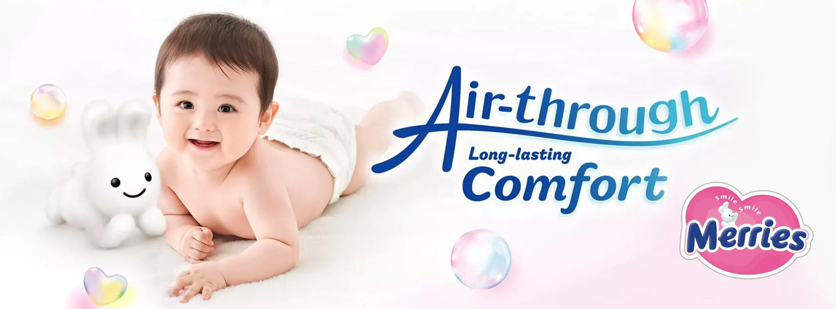 MERRIES produces ultra-soft Japanese diapers—highly absorbent, breathable, and gentle on baby skin.
