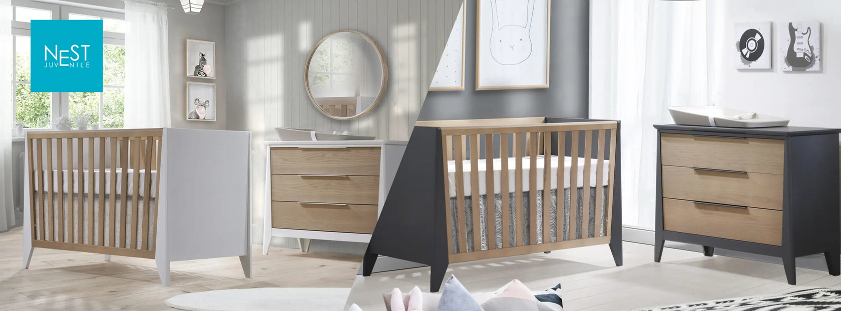 NEST FLEXX offers modular nursery furniture—expandable cribs and storage that grow with your child.