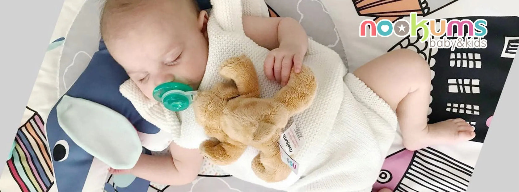 NOOKUMS creates plush pacifier holders and teethers with adorable animal characters.