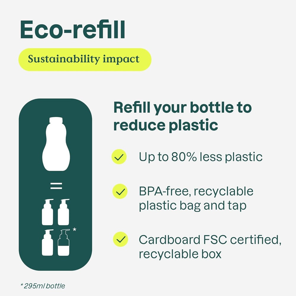 This refill bottle fits seamlessly into your family’s bathroom or kitchen, complementing minimalist and eco-conscious home styles. Its neutral design supports gender-neutral spaces, making it easy to integrate into any nursery or family area.
