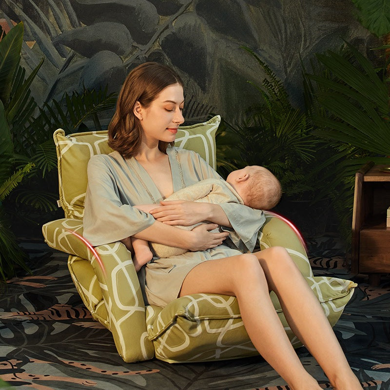 This nursing chair complements modern nursery themes, especially minimalist and gender-neutral designs. Its calming pattern and versatile adjustability make it perfect for daily routines and cozy feeding corners. It’s ideal for creating a peaceful space that encourages bonding and relaxation during all seasons.