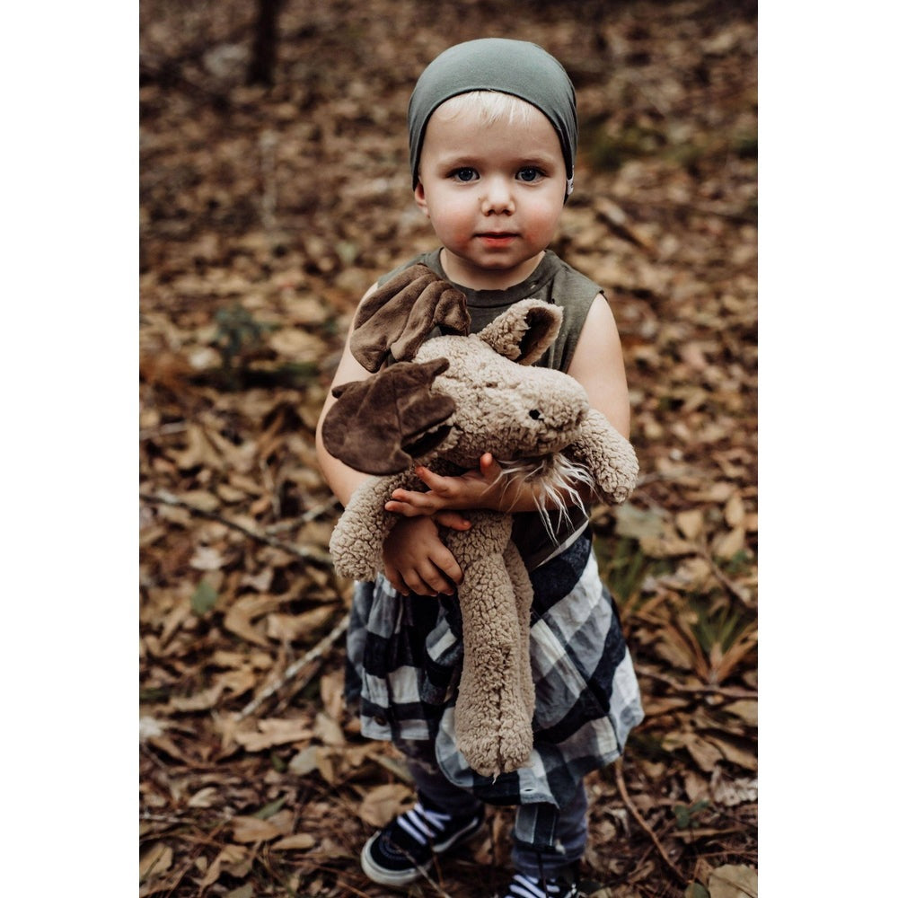 Incorporate Bruce the Moose into your child’s daily routine as a comforting companion during naps or quiet play. This gender-neutral stuffed animal fits beautifully into minimalist and sustainable nursery themes, enhancing the cozy environment.