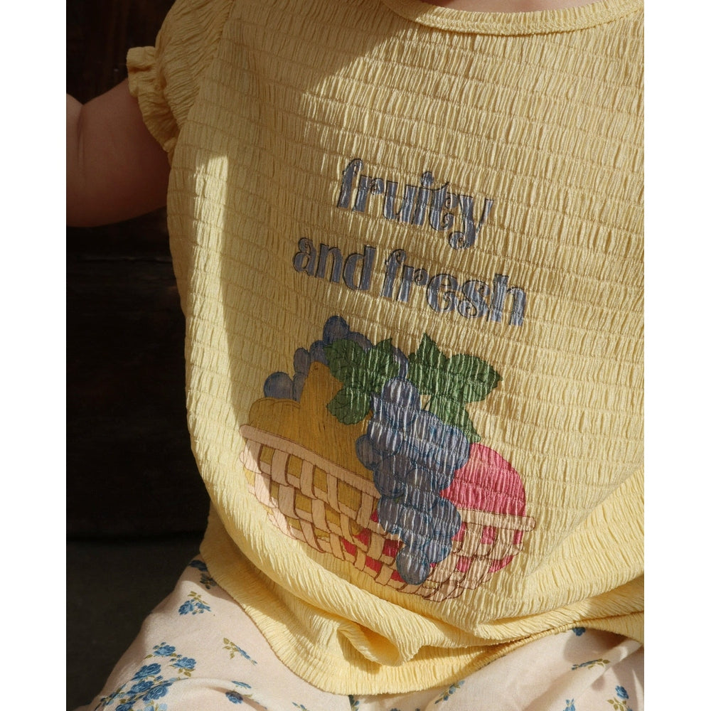 Fresh, summery, and made from recycled materials — this soft, stretchy tee in warm Sunlight yellow brings sustainable style to every little wardrobe. Meet the Konges Slojd Solilja Tee.