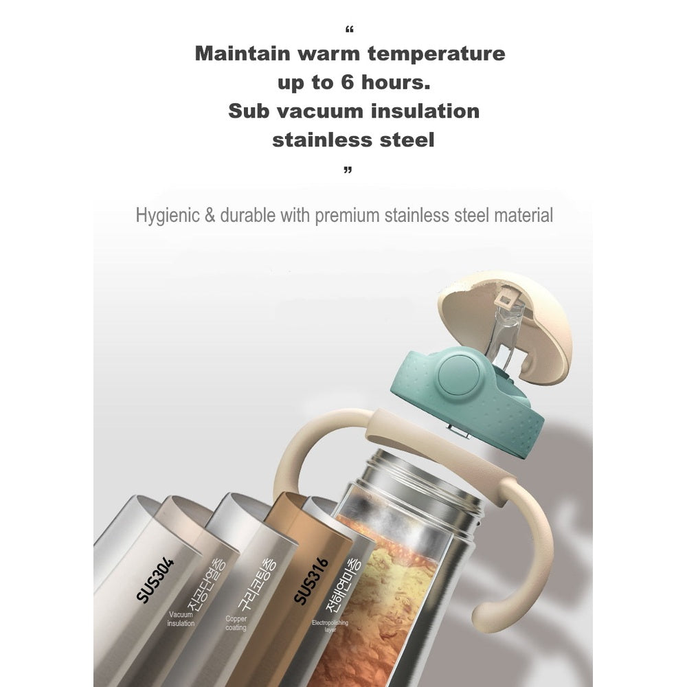 Incorporate the MOTHER-K HUG TUMBLER into your baby’s daily feeding routine to encourage hydration and independence. Its minimalist design with soft mint accents fits well in modern nurseries. Plus, the sustainable stainless steel build aligns with eco-friendly parenting values and gender-neutral aesthetics.