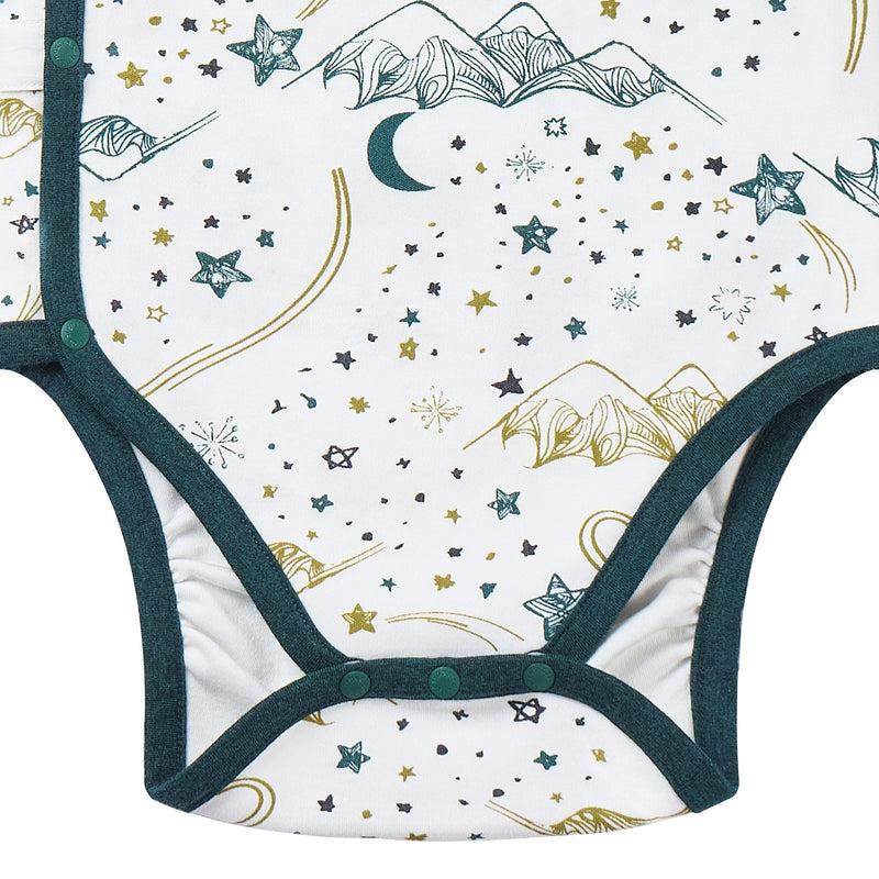 Nest Designs Organic Cotton Long Sleeve Kimono Onesie-Stars White