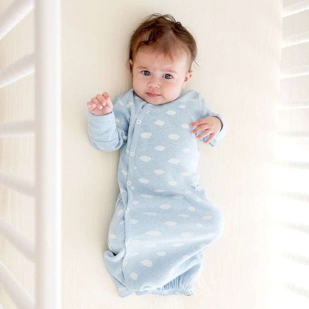 Integrate this gown into a minimalist nursery setup with neutral tones for a timeless look. Its organic cotton supports sustainable choices, while the gender-neutral prints keep the design versatile throughout growth stages.