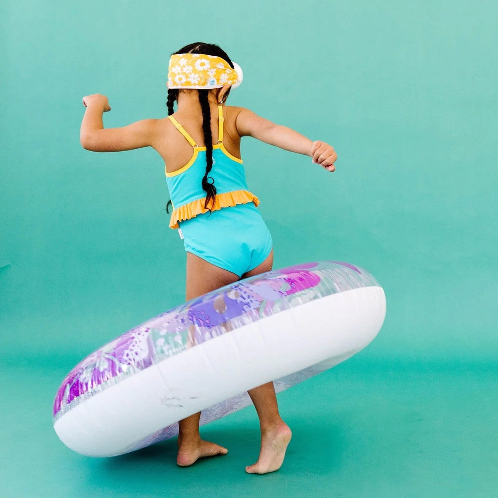 Pair these goggles with minimalistic swimwear for a trendy, gender-neutral look. The floral strap complements bright, sustainable pool accessories and fits seamlessly into any child’s swim kit.