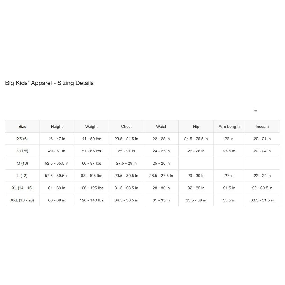 • Sizes: XS (6), S (7/8), M (10), L (12), XL (14/16), XXL (18/20)
